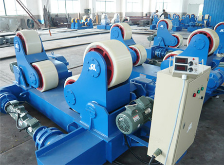 答:長軸式滾輪架中滾輪,通常是呈兩行同軸排列的,一行是主動輪,另一行是從動輪,而且兩邊滾輪的數(shù)量是相等的。其應(yīng)用,則主要是為細(xì)長筒體工件的焊接與裝配。
